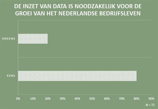 Consumenten laten steeds meer digitale sporen achter, met een steeds groter wordende berg data als resultaat. Marketeers en bedrijven kunnen dan ook niet meer om de inzet van data heen, is de conclusie van het onderzoek dat de Data Academie uitvoerde onder Nederlandse data-driven marketeers. 80% van de respondenten verwacht dat de inzet van data door het Nederlandse bedrijfsleven onmisbaar is om te groeien. Ruim twee derde ziet daarbij een voortrekkersrol weggelegd voor de marketeer die gebruikmaakt van inzichten uit data, zeker als die gekoppeld worden aan creatieve denkprocessen van merkenbouwers. De tijd van merkenbouwers die niets met data doen en niet samenwerken met data-gedreven collega’s lijkt voorbij: slechts 7% van de ondervraagden verwacht dat zij in 2020 nog een rol van betekenis spelen.