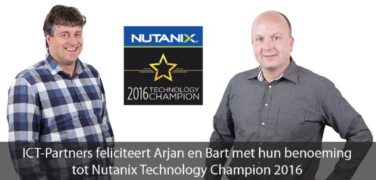 “ICT-Partners, premier Partner van Nutanix, is uitermate trots op het feit dat twee van haar consultants, te weten Arjan Hendriks en Bart Donders, toegetreden zijn tot het wereldwijde, selecte gezelschap van Nutanix Technology Champions”, aldus Pascal Verberkt, Algemeen directeur van ICT-Partners.