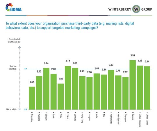 third-party datasets (zoals mailinglijsten van een externe partij) aankoopt voor marketingdoeleinden daalt. In Nederland is het aantal bedrijven dat gebruikmaakt van aangekochte datasets lager dan in landen als Groot Brittannië, Verenigde Staten en Zweden.