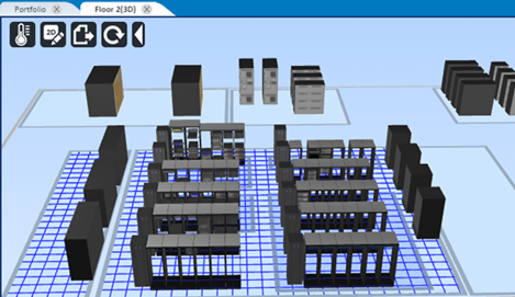 - Nieuwe 2D-/3D-visualisatiemogelijkheid waarmee gebruikers, lokaal en op afstand, apparaten kunnen draaien, erop inzoomen en bekijken op het niveau van de ruimte, het rack en het apparaat, en luchttemperatuurprofielen kunnen bekijken op het niveau van racks, om het plannen van capaciteit en gebruiksactiviteiten te kunnen verbeteren.
