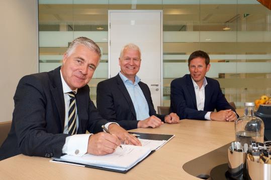 Ondertekening van het contract door Jan-Joost Galesloot, Eric van Scherpenzeel (Datacenter Arnhem) en Gerben van der Veen (Managing Director Dataplace).