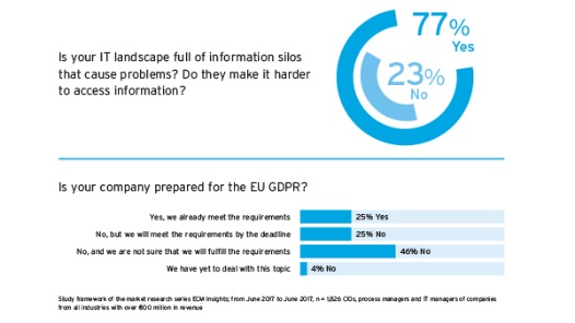 Study framework: SER study, ECM Insights 2017; conducted in German-speaking countries from January 2017 to December 2017; n = 1,826 CIOs, process managers and IT managers of companies from all industries with over €100 million in revenue