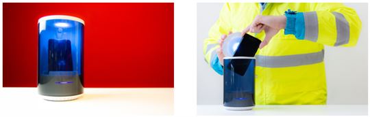 De smartphone-reiniger misstaat qua uiterlijk niet in een sciencefictionfilm, maar de werking is even eenvoudig als efficiënt. Deksel eraf, telefoon erin, acht minuten wachten en de telefoon is voor volledig bacterievrij. Het blauwe licht dat het apparaat zo futuristisch maakt is uv-licht. Kenmerkend voor uv is dat het een golflengte heeft die binnendringt tot de celwanden van bacteriën en virussen. Daar beschadigt het hun DNA en sterven de ziektekiemen. Uniek aan de reiniger die PEAK-IT uitdeelt is dat daarnaast gebruik wordt gemaakt van ozon. Ozon werkt desinfecterend en wordt veelvuldig ingezet om water en lucht te zuiveren.