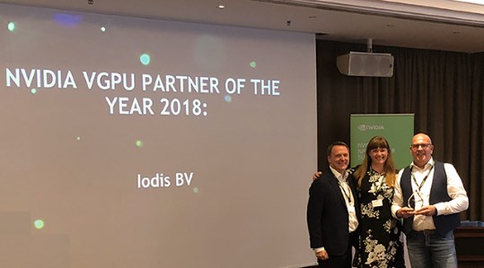 Utrecht, 24 oktober 2018 – Value Added Distributeur IOdis uit Utrecht ontving op 9 oktober op basis van haar kennis en focus de NVIDIA vGPU EMEA Partner of the Year 2018 Award.