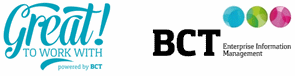 Great! To Work With is ontstaan vanuit de concrete behoefte van klanten van BCT om buiten de projectmatige implementatie van softwareoplossingen ook ondersteund te worden bij de maximale acceptatie van deze oplossingen. Great! biedt complementaire diensten op het gebied van kaderstelling, inbedding en functionele ondersteuning. De werknemers die dagelijks met softwareoplossingen van BCT werken, op welk niveau dan ook, zijn voor hun functioneren én hun werkplezier voor een groot deel afhankelijk van de mate waarin ze met deze oplossingen uit de voeten kunnen. Great! luistert naar professionals en neemt ze mee naar de toekomst. Meer informatie is te vinden op