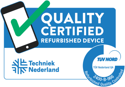 Het Keurmerk Refurbished biedt jou nog meer zekerheid bij de aanschaf van je refurbished Apple iPhone. De toegepaste processen voor het Keurmerk Refurbished zijn namelijk gecontroleerd met een technische audit door TÜV Nederland. TÜV Nederland test niet alleen de veiligheid en kwaliteit, maar ook de betrouwbaarheid en leefomgeving door middel van certificering, keuring, inspectie, CE-markering en training.