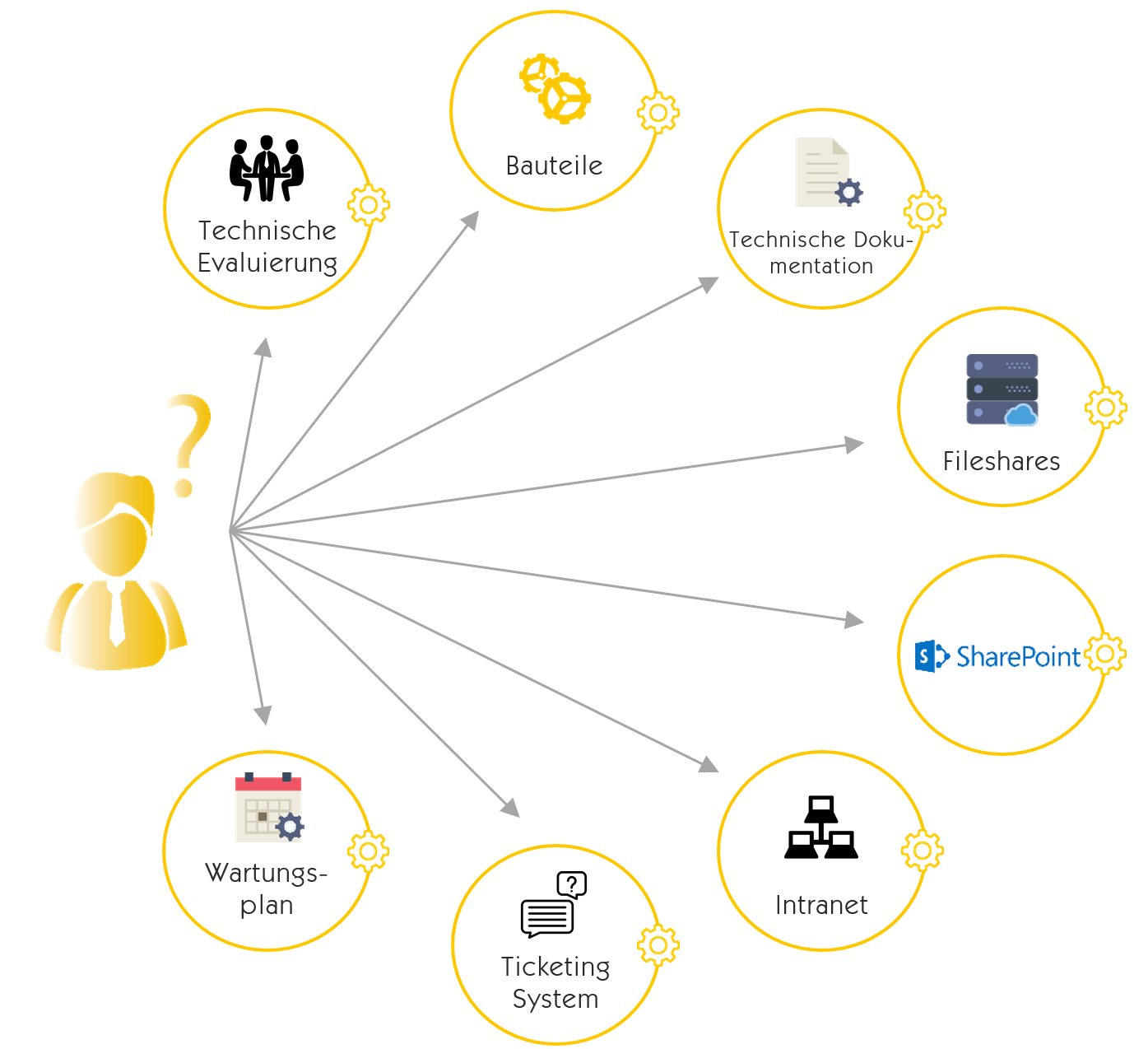 Afbeelding 1: kenmerkende gegevensbronnen van een bedrijf zonder Insight Engine (bron: Mindbreeze)