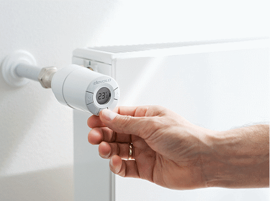 Met de smart-home-oplossingen van devolo gaat je comfort omhoog en bespaar je geld. Slimme automatiseringssystemen zoals devolo Home Control zorgen ervoor dat elke kamer op de gewenste tijd tot de gewenste temperatuur wordt verwarmd. Daarvoor moeten de oude thermostaten in een paar eenvoudige stappen vervangen worden door de slimme thermostaten. Daarna kun je de gewenste temperatuur op de app instellen en hier ook aangeven hoe laat de verwarming aan moet. De thermostaten werken ook samen met slimme deur- en venstercontacten om ervoor te zorgen dat de temperatuur automatisch omlaag gaat als een kamer wordt gelucht en weer omhoog als de ramen dicht zijn.