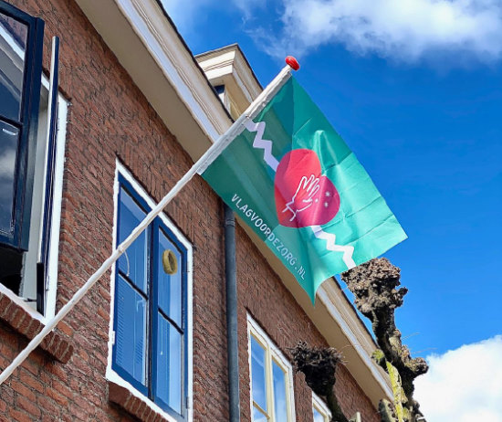 www.VlagvoordeZorg.nl en betuig bij het uithangen van de vlag ook meteen je steun aan iedereen in de zorgsector in Nederland.