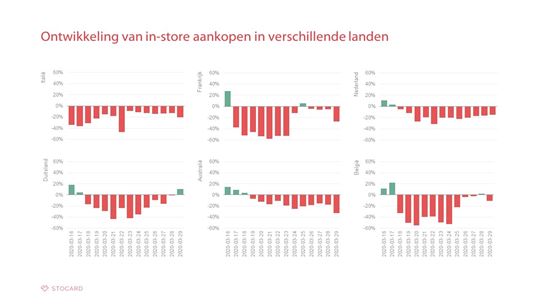 Nederland volgt hiermee de trend van andere Europese landen. Ook in België, Frankrijk, Duitsland en Italië zijn er vrijwel alleen negatieve cijfers te zien. Vanaf 18 maart is er een dalende lijn waar te nemen in alle landen. De retail heeft het dus in heel Europa moeilijk.