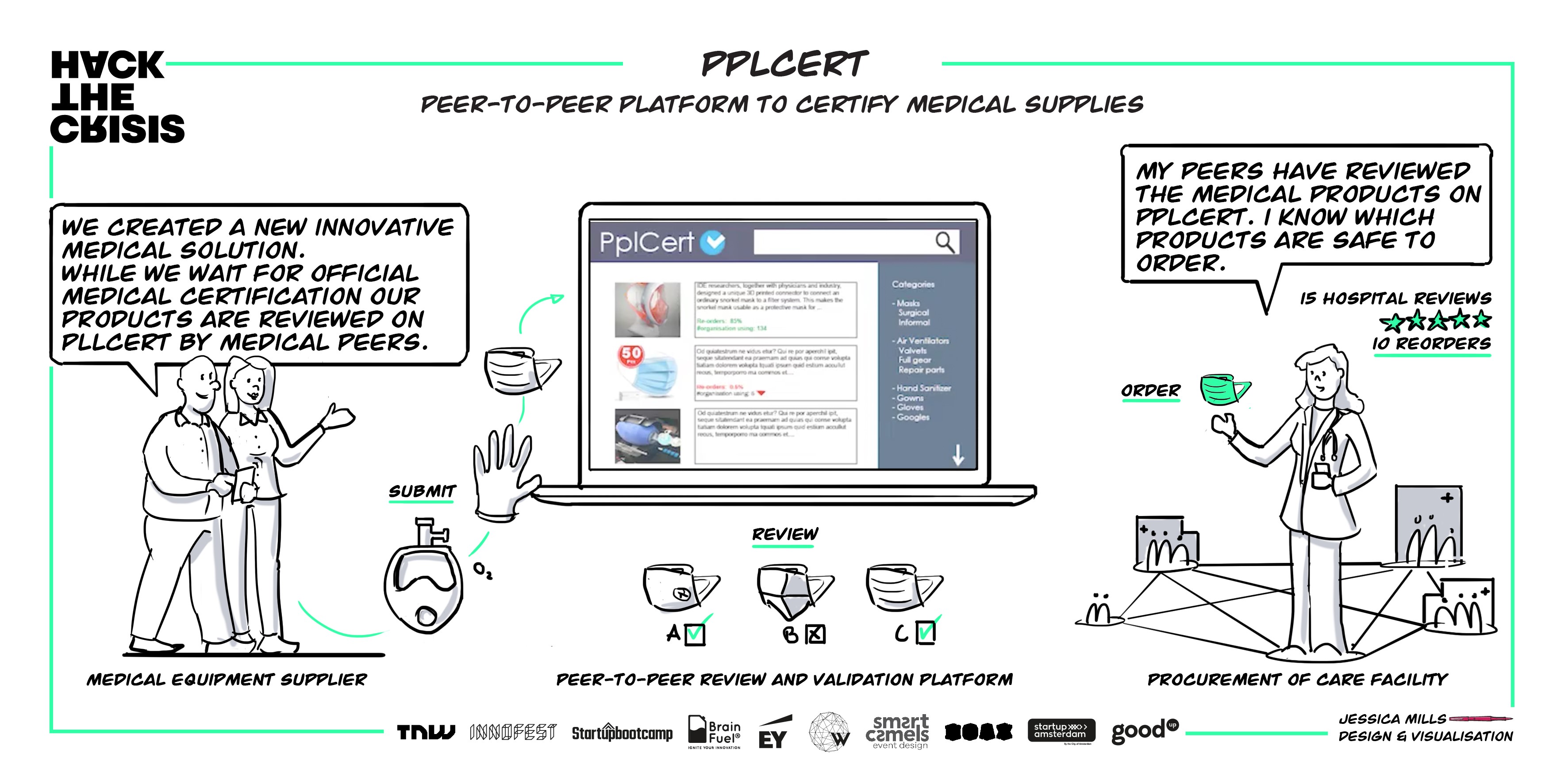 Door de coronacrisis is er een groot tekort aan medische producten. En van de nieuwe producten die de markt overspoelen, van allerhande soorten mondkapjes tot duikbrillen die dienstdoen als beademingsmasker, is het voor zorgprofessionals lastig te bepalen hoe veilig het allemaal is. Om hier iets aan te doen, ontwikkelden het team achter ‘PPlcert’ een platform waarop de zorggemeenschap samen producten kan recenseren en zo hun betrouwbaarheid kan vaststellen. Zo kan een kleiner ziekenhuis bijvoorbeeld profiteren van de tijd die een grotere zorginstelling al aan kwaliteitsonderzoek heeft besteed, en kunnen artsen en patiënten de producten eerder gebruiken.