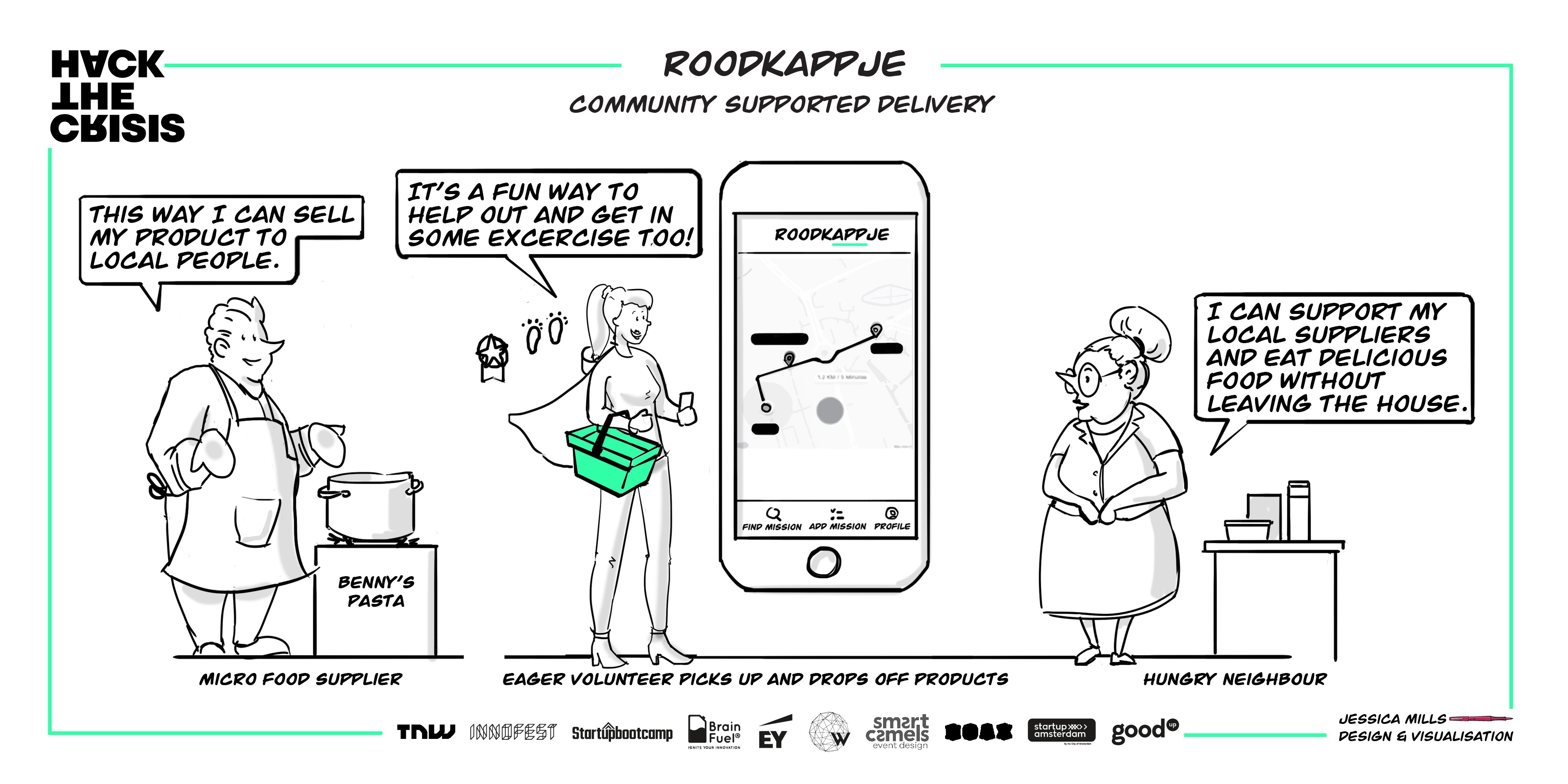 Roodkappje koppelen ze kleine voedselleveranciers, van bakker tot groenteboer, aan vrijwilligers die zich aanbieden als bezorgers. Gedurende het weekend gaven al zo’n 25 ondernemers aan graag van het platform gebruik te willen maken.