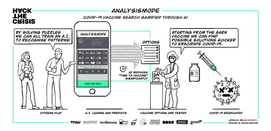 Miljarden mensen wachten machteloos op een vaccin tegen COVID-19, terwijl slechts een paar duizend wetenschappers er daadwerkelijk aan kunnen werken. Dat kan anders, dacht het team van ‘AnalysisMode’. Zij creëerden een onderzoeksplatform waarmee iedereen die dat wil kan helpen in de zoektocht naar een vaccin door een online puzzel te maken. De input van de deelnemers zorgt er vervolgens voor dat het voor kunstmatige intelligentie mogelijk wordt de vaccinformule voor COVID-19 te voorspellen. Het puzzelspel is inmiddels al 7000 keer gespeeld, door mensen uit 93 landen. Het team heeft inmiddels contact met de Universiteit van Oxford en farmaceuten voor de verdere ontwikkeling van hun dienst.