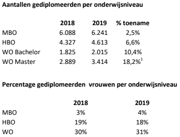 - Aantal gediplomeerden neemt toe, vooral HBO en WO;