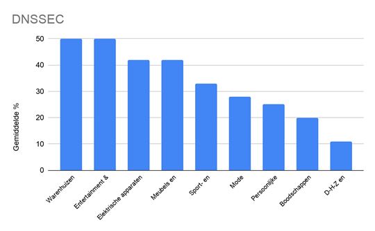 DNSSEC tool komt naar voren dat DNSSEC het best op orde is in de categorie ‘online warenhuizen’ met websites zoals Wehkamp.nl en Bol.com en de categorie ‘entertainment & kantoor’ met websites zoals wederom Bol.com en Intertoys.nl. Beide categorieën hebben een gemiddelde score van 50%.