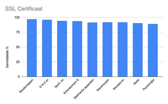 SSL tool van Immuniweb. Hierin valt op dat deze online beveiligingsmethode het meeste op orde is bij alle webwinkels. De categorie ‘online boodschappen’ met online winkels zoals AH.nl en Plus.nl voert deze lijst aan. De gemiddelde score van deze webwinkels is 97%.