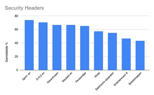 deze online tool komt naar voren dat de security headers het best op orde is in de categorie ‘sport- en vrijetijdsartikelen’ met online winkels zoals Futurumshop.nl en Bol.com met een gemiddelde score van 74%. Op positie twee eindigt de categorie ‘doe-het-zelf en woningdecoratie’ met een gemiddelde score van 70% met online winkels zoals wederom Bol.com en Lidl-shop.nl.