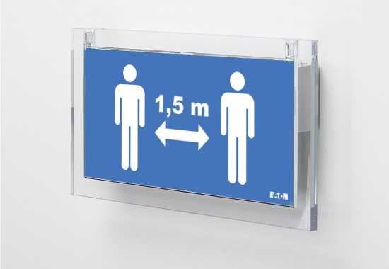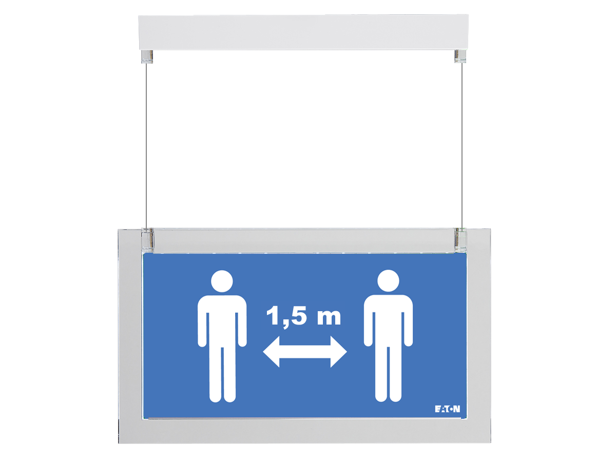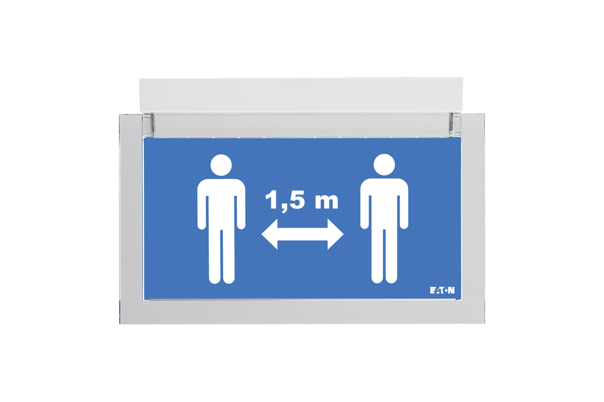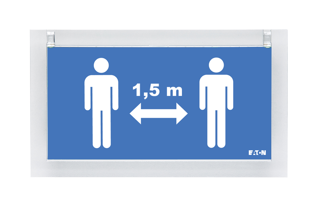 Het CrystalWay Social Distancing armatuur maakt gebruik van de expertise die Eaton heeft op het gebied van noodverlichting. Zo heeft het armatuur een hoge lichtsterkte voor optimale zichtbaarheid. De armatuur wordt geleverd met 3x2 pictogrammen voor een, anderhalf en twee meter afstand en is geschikt voor muurmontage met enkelzijdig pictogram, of voor plafondmontage met dubbelzijdig pictogram. Dit speciale armatuur is, in tegenstelling tot de overige Eaton CrystalWay producten, géén noodverlichting, maar een normaal verlichtingsarmatuur dat aangesloten kan worden op 230V.