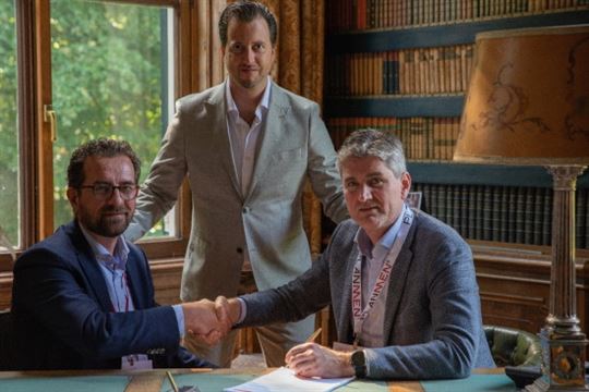 Tijdens het PlanMen WFM Congres -voor de coronacrisis- tekenden de partijen reeds een intentieverklaring voor de samenwerking. v.l.n.r. Joep Gerris, Strategic Partner Director Calabrio | Mark Elschot, commercieel manager PlanMen | Arjan Spruijt