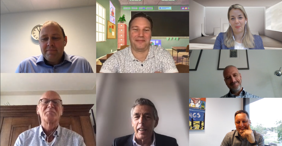 V.l.n.r. onder: Ruud van Rakt, Senior Adviseur Aloysius Stichting, Hans Kelderman, Voorzitter College van Bestuur Aloysius Stichting, Wilbert van Beek, Directeur Ictivity.