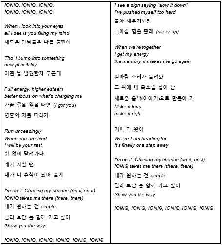 Met het nummer ‘IONIQ: I’m On It’ wil Hyundai de positieve ervaring van elektrisch rijden versterken. De songtekst van het nummer – gezongen en gerapt door BTS-bandleden RM, Jin, SUGA, j-hope, Jimin, V en Jung Kook – drukt gevoelens van ontdekking, nieuwsgierigheid, hoop, creativiteit en inspiratie voor de toekomst uit, die vervolgens bevestigd worden met de tekst ‘IONIQ takes me there’ in het refrein. In de videoclip is een glansrol weggelegd voor Hyundai’s nieuwste elektrische concept car Prophecy, die afgelopen maart onthuld werd.